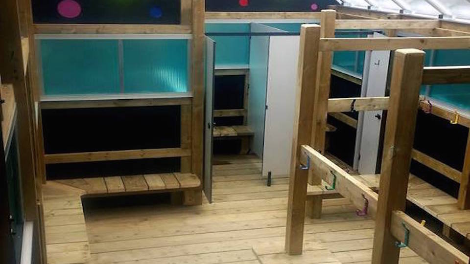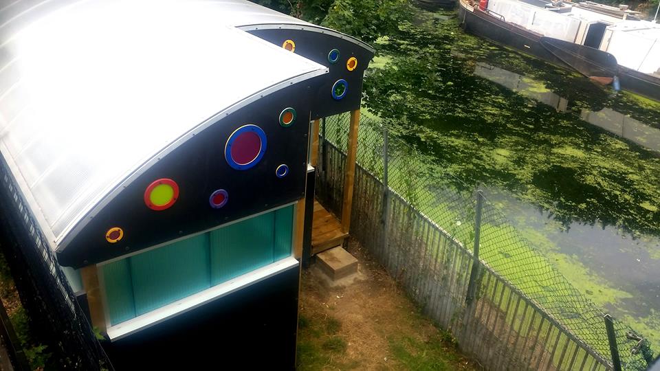 The site is positioned directly on the picturesque River Lea Navigation – opposite Hackney Marshes Nature Reserve. Initially the learning centre was intended to be mainly used as a base to get changed into waterproof gear and to get ready for expeditions onto the Marshes – as well as a place to store all of the Forest School equipment. We incorporated a small verandah with seating, with a view onto the River, a place to pause and observe both bird and boat life. The building is set in a quiet and formerly disused corner of the playground. The building’s use has evolved over the years and we have since been asked to come back and make a few alterations – including opening up the internal space for larger group learning activities – along with the addition of infrared heaters, extra storage capacity, a work station for lessons, plus a few improvements that were made to the canal-side garden out the back.